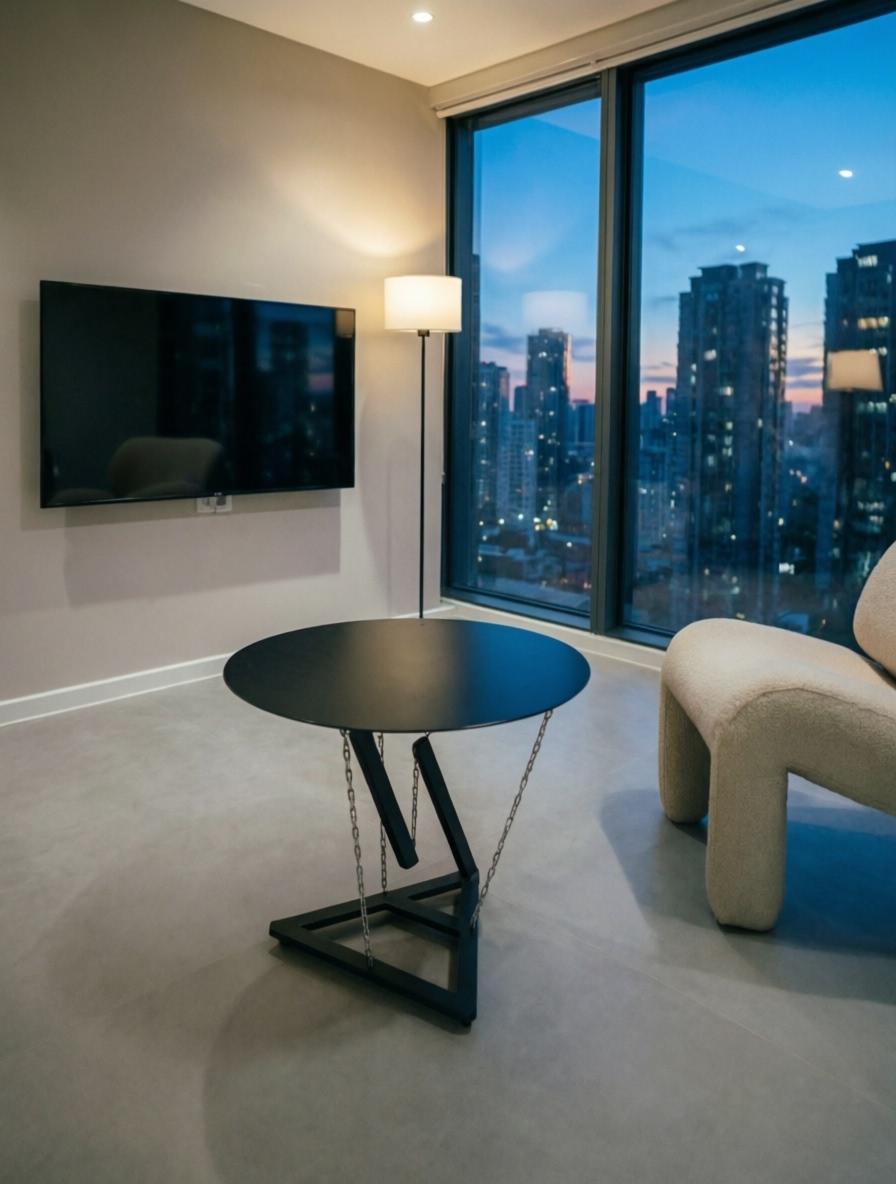 Модель минимал Закалённое стекло премиум-класса парит над основанием, создавая эффект невесомости. Диаметр столешницы 700 мм — оптимальный размер для журнального стола. Материал столешницы Закалённое стекло 6 мм с полированной кромкой. Тонировка стекла. Основание Металл, Высота стола 630 мм — эргономичная высота для гостиной. Цвет черный матовый. Под заказ